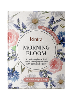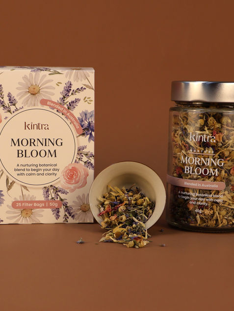 Flavour notes and benefits: A nurturing infusion of chamomile, lavender, and lemon myrtle with sweet fennel and the gentle strength of ashwagandha and echinacea. Raspberry leaf and olive leaf bring depth, while rose petals, calendula, and cornflower add a delicate floral finish. Each cup is a calm exhale, a steady, grounding way to bloom into the day ahead.